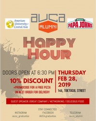 AUCA's Alumni Council together with Alumni Relations Office of AUCA is happy to invite you to the next Alumni Happy Hour.