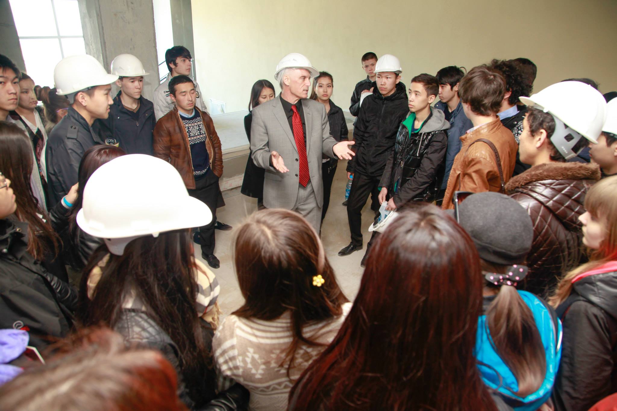 Yesterday, on March 19th, the president of AUCA, Andrew Wachtel led a special tour around the new university campus for the 11th graders from school #60 in Bishkek. Almost 50 pupils visited the campus with their class instructors.