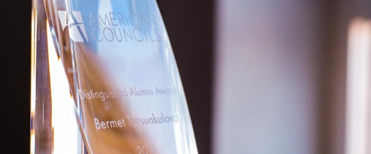 Vice President for Academic Affairs of AUCA Bermet Tursunkulova received the Distinguished Alumni Award from the nonprofit organization American Councils as one of the first FLEX Program alumni.