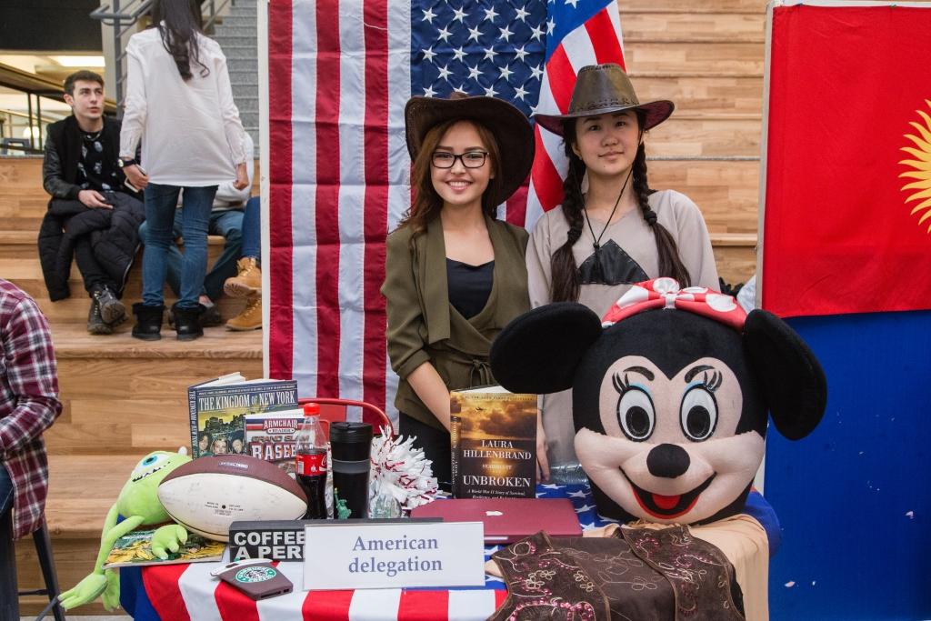 Meerim Nurkanova, from the Italian Delegation and an ICP student, said, “Aman is the leader of our delegation; he offered to create the Italian Delegation, because it hasn’t been represented before. Many students were surprised to hear that an Italian Delegation was created. We, our friends and families, have brought all of these souvenirs from Italy over the past couple of years. There are twenty members in our delegation. We have divided ourselves into groups, with each group responsible for their own day. We hope everything will be fine—at least we’ll try.”
