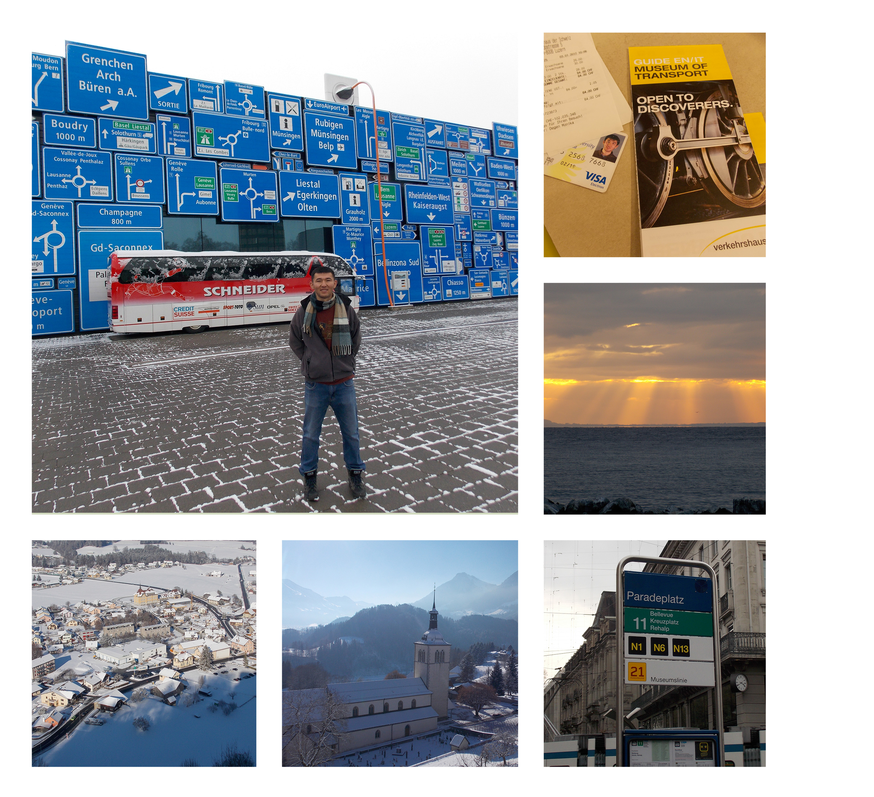 Photo 2. Switzerland. The Museum of Transport in Luzern, Lake Geneva, the castle of Gruyeres, and Paradeplatz in Zurich.
