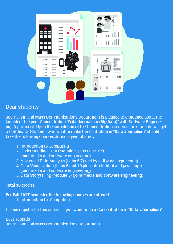 the launch of the joint Concentration "Data Journalism (Big Data)" with Software Engineering Department. Upon the completion of the Concentration courses the students will get a Certificate;