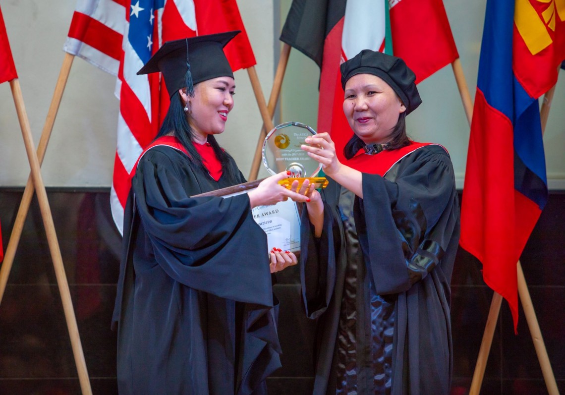Congratulation to Saniia Toktogazieva with The Best Teacher Award based on student votes, in recognition of Excellence in teaching and dedication to the growth and enrichment of AUCA.