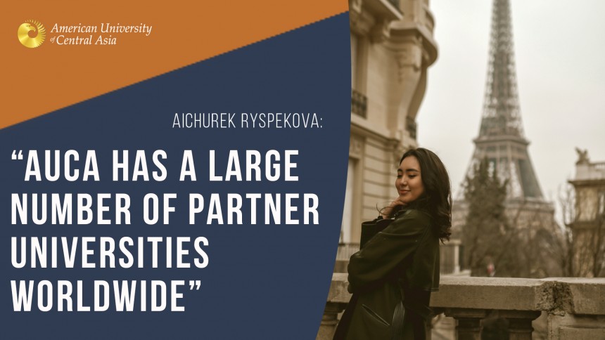 One of the reasons why I chose AUCA is that it has a large number of partner universities worldwide. I dreamed of being an exchange student as I am eager to learn new things like languages and various different cultures, especially French. Since childhood I've dreamed of fluently speaking French and I am thankful to AUCA professors who helped me to improve it.