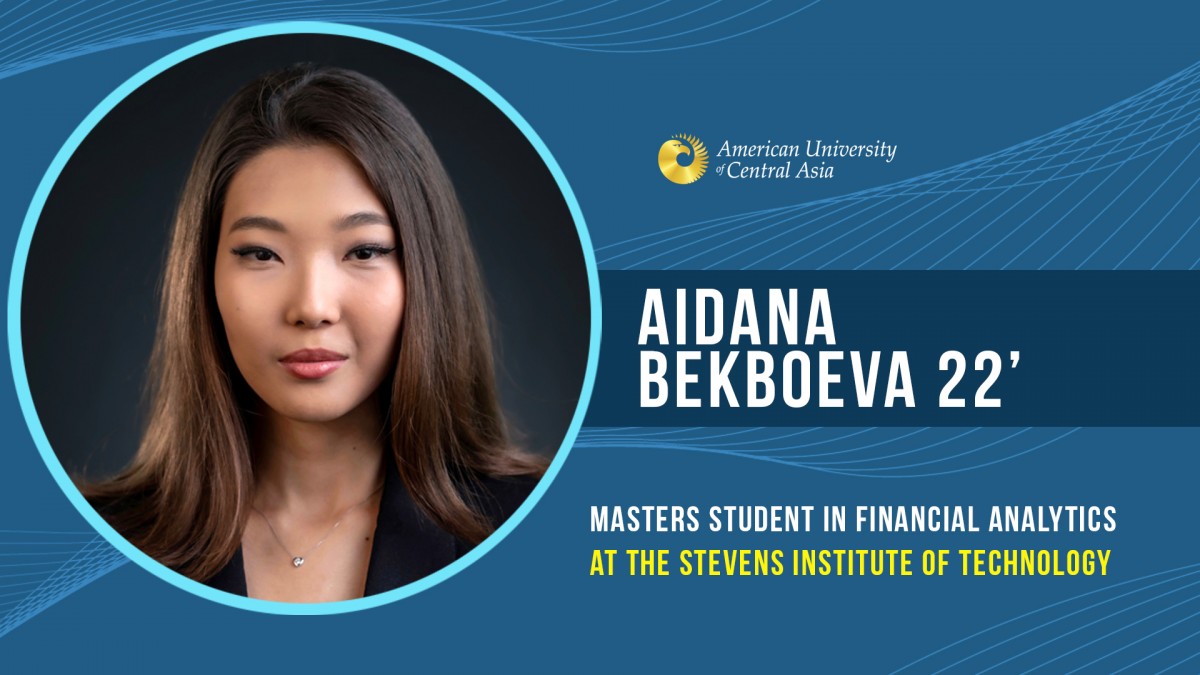 Aidana Bekboeva graduated from AUCA in 2022 with a bachelor's degree in Applied Mathematics and Informatics. In 2018 Aidana won the Brain Ring Intellectual Tournament and got first place, which allowed her to study at AUCA with a full scholarship. Currently, Aidana is pursuing a Masters's Degree in Financial Analytics at the Stevens Institute of Technology in New York.