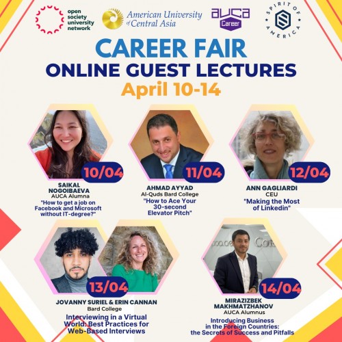 We are pleased to announce the AUCA Career Development Center in partnership with the AUCA Dean of Students Office, OSUN partner universities and Spirit of America prepared a series of online career workshops for the AUCA Afghan students.