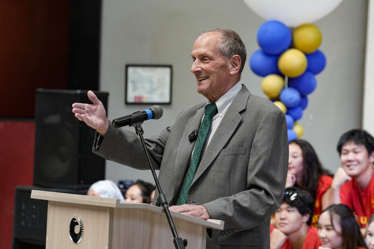 During the final moments of the Orientation Program, AUCA President Timothy O’Connor addressed the freshmen, faculty, and staff with an inspiring speech. He congratulated everyone on the beginning of the new academic year and shared his own experience of working at AUCA, reflecting on his first steps at the university three years ago. O’Connor emphasized the unique spirit of AUCA, which he has truly felt since joining the community, and praised the freshmen for their creativity and resilience throughout Orientation.