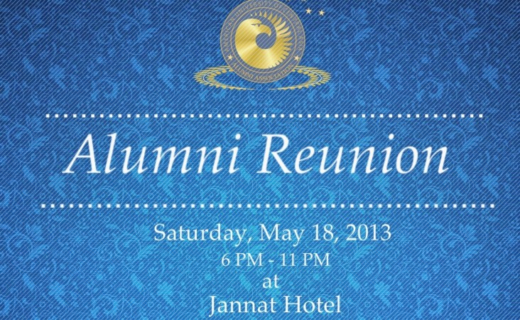 We are delighted to invite all alumni and their guests to the Alumni Reunion, which is taking place on Saturday, 18 May 2013 from 6PM until 11 PM at Jannat Hotel. This event is designed to bring together the AUCA community of alumni and friends to commemorate your shared experiences and engage in valuable dialogue. A light buffet and wine will be served.