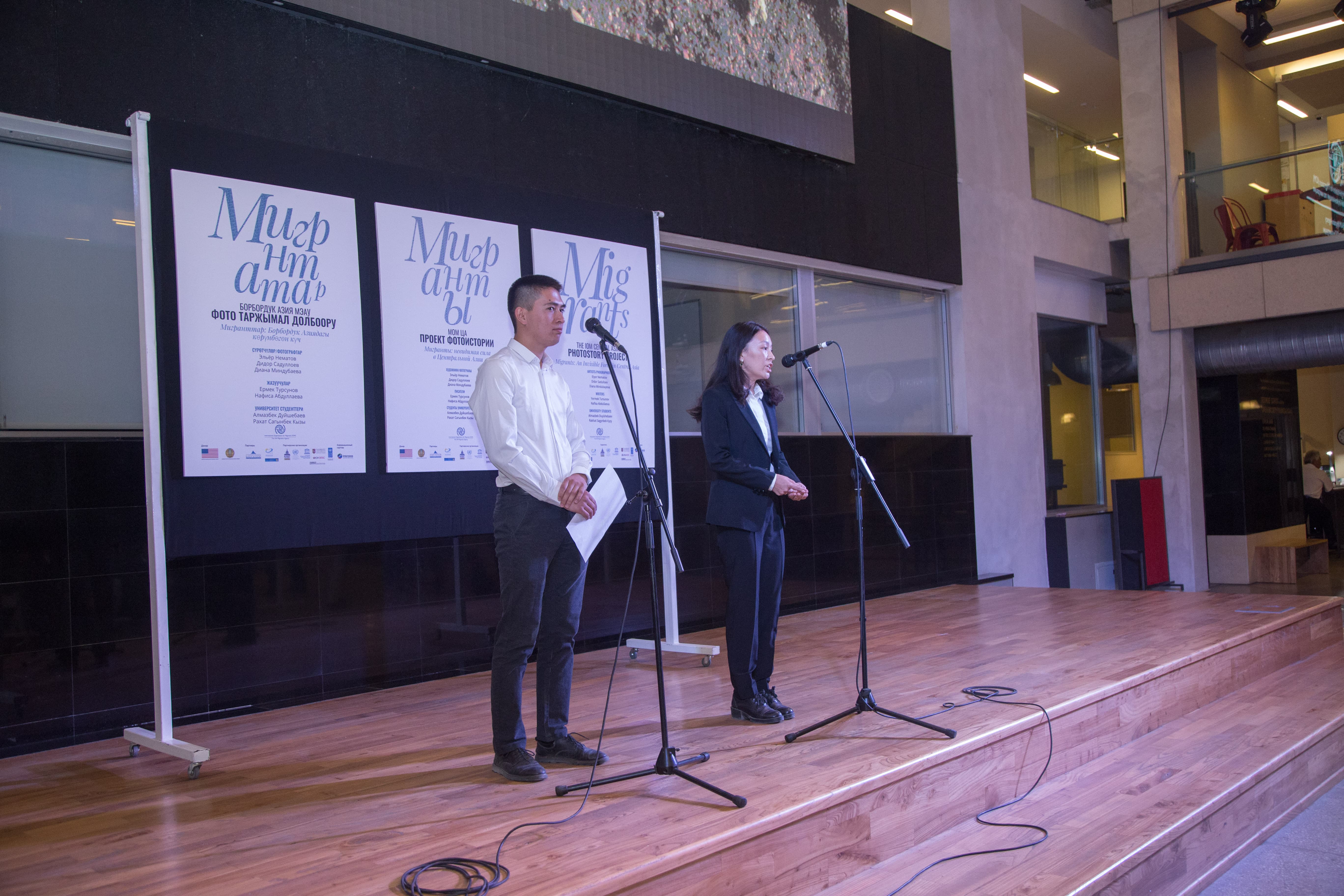 The exhibition was opened by the president of the AUCA Andrew Wachtel, the Head of the IOM office in Almaty/ Deputy Regional Coordinator for Central Asia - Tatyana Hadjiemmanuel, Deputy Chairman of the State Migration Service under the Government of the Kyrgyz Republic Almazbek Asanbayev, representatives of the Embassies of different countries and others.