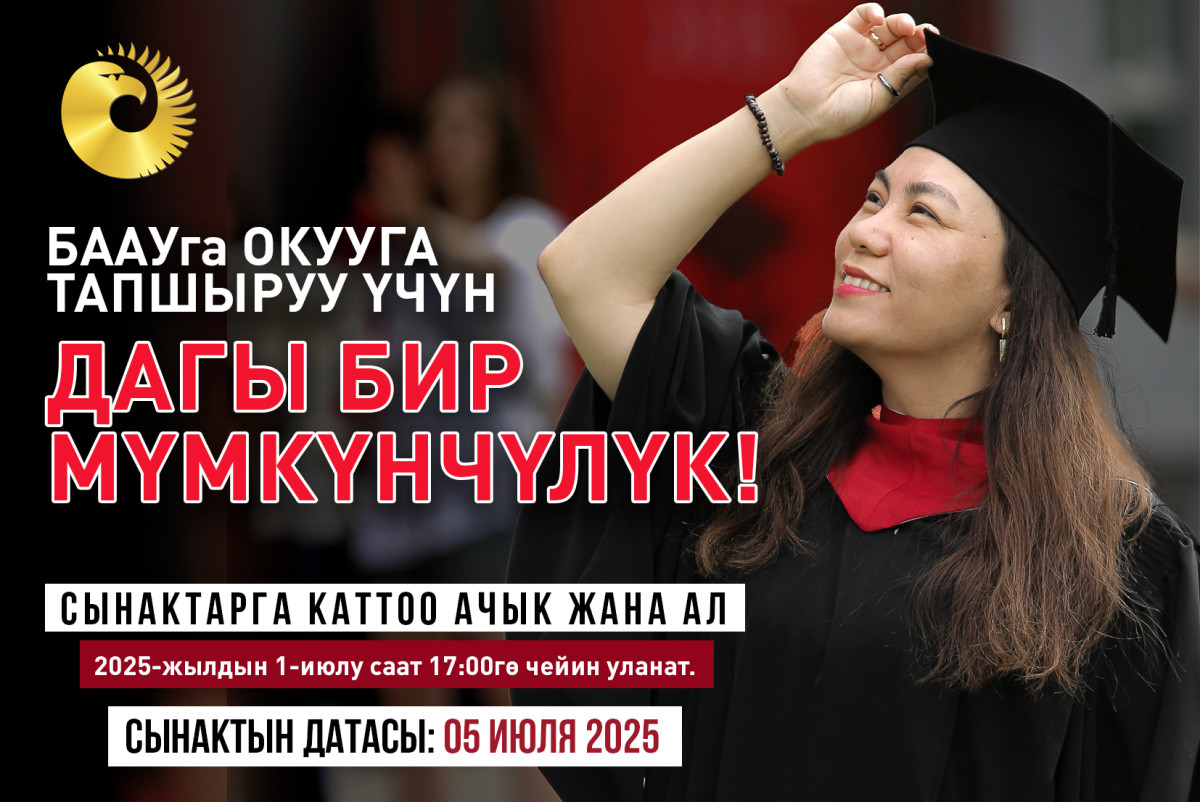 БААУнун кезектеги кабыл алуу сынактарына каттоо ачык жана ал 2025-жылдын 1-июлу саат 17:00гө чейин уланат.