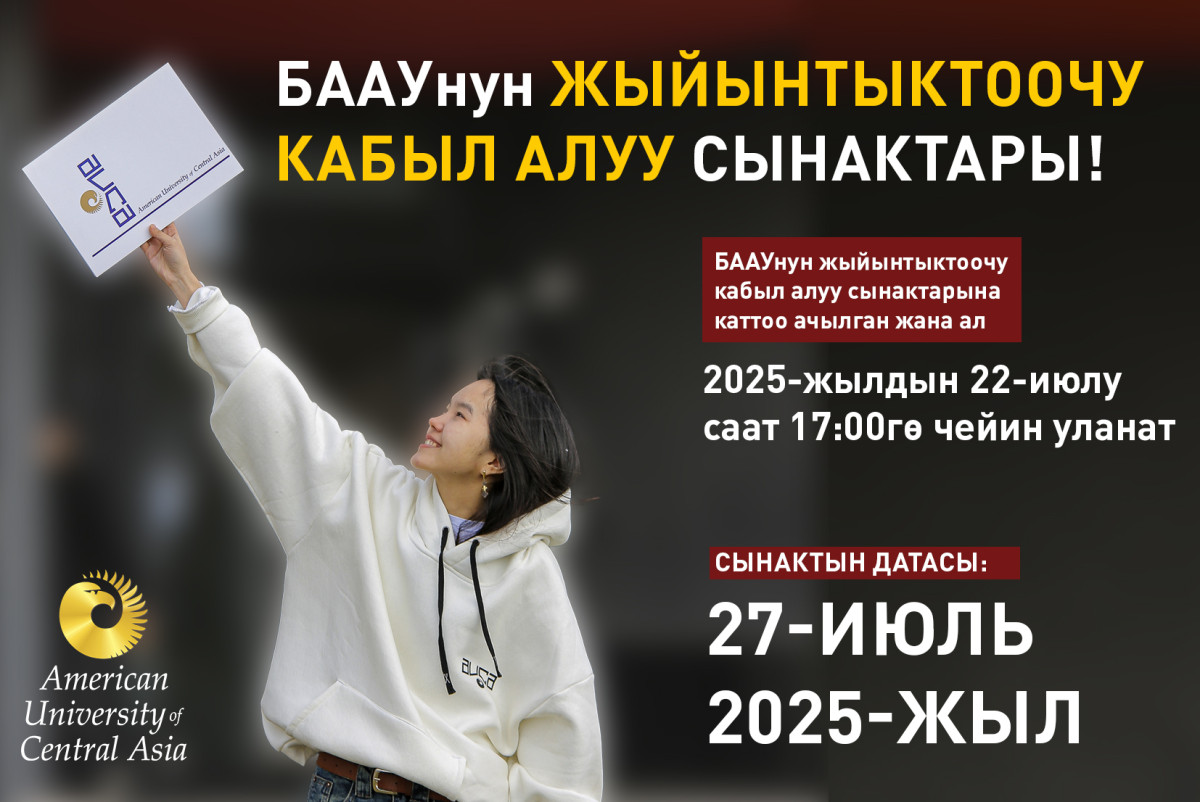 БААУнун жыйынтыктоочу кабыл алуу сынактарына каттоо ачык жана ал 2025-жылдын 22-июлу саат 17:00гө чейин уланат.