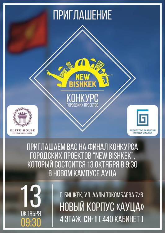 13 октября, 2016 года в Американском Университете в Центральной Азии (АУЦА) состоится финал конкурса городских проектов New Bishkek.