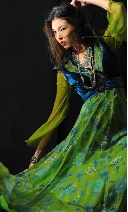 «Кампейн коллекции имеет предысторию и название – «Бегущая по волнам». Для кого-то это название прочно ассоциируется с героиней рассказа Александра Грина – легендарной Фрейзи Грант, спасительницы тонущих моряков и прекрасного символа надежды. Для нас – та, что бежит наперегонки с волной Иссык-Куля, соревнуясь с ней по легкой глади в сумерках заката. Наша героиня – как и Фрейзи Грант – абсолютно мифический персонаж. Это девушка, которая жила в городе, оставшемся где-то на дне озера. Помните легенду о том, как образовался Иссык-Куль? От слез и разорвавшегося сердца несчастной красавицы, которую пытались насильно выдать замуж за сластолюбивого хана. Но как только на крепостные стены башни брызнула кровь девушки, на город обрушилась беспощадная стихия, вмиг затопив его водой. И теперь вместо старого городища мирно плещется самое красивое в мире горное озеро – Иссык-Куль. Вода его всегда тепла и чуть солоновата на вкус – ведь она состоит из слез красавицы. Люди с окрестных сел до сих пор видят остатки этого города у самой кромки воды вдоль южного берега, слышат по вечерам девичий смех и пение на диковинном старинном и малопонятном языке.