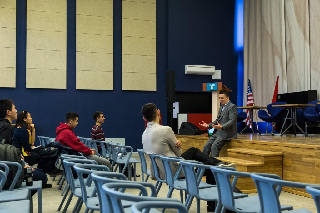 Презентацию университета провел менеджер по маркетингу и рекрутингу Маршалла Стюарт Ховелс. Он поделился со студентами некоторыми советами:
