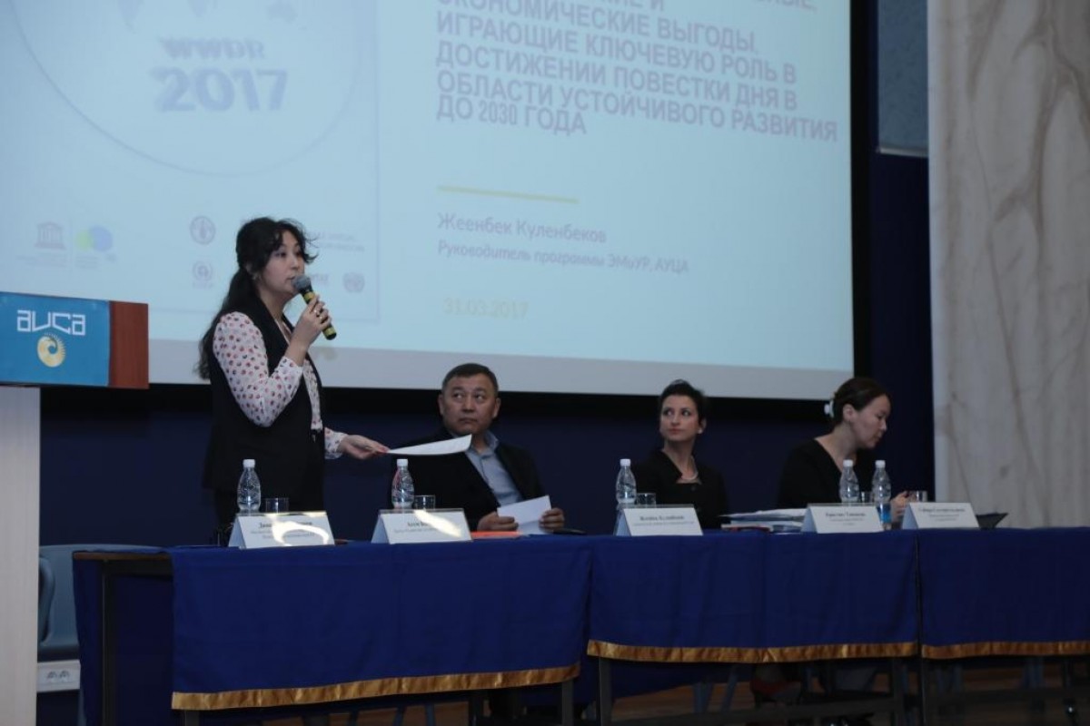 Сегодня, 31 марта, в АУЦА прошел семинар на тему «Презентация доклада ООН о мировом развитии водных ресурсов, посвященного Всемирному дню водных ресурсов 2017». Мероприятие проводилось в рамках празднования Всемирного дня водных ресурсов.