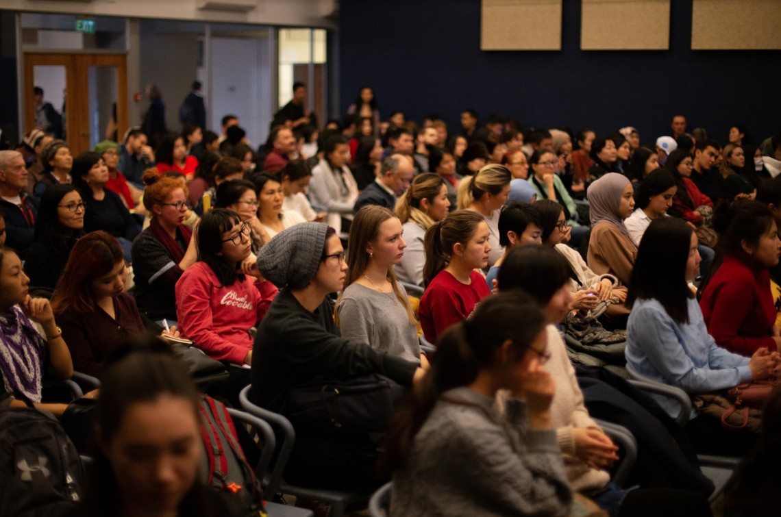 Картина, ставшая сенсацией Московского международного кинофестиваля – 2018 и взявшая главный приз XVII Международного кинофестиваля в Дакке, собрала в АУЦА полный зал. Несколько сотен гостей пришли для того, чтобы посмотреть “Песнь древа” и пообщаться с создателями фильма.