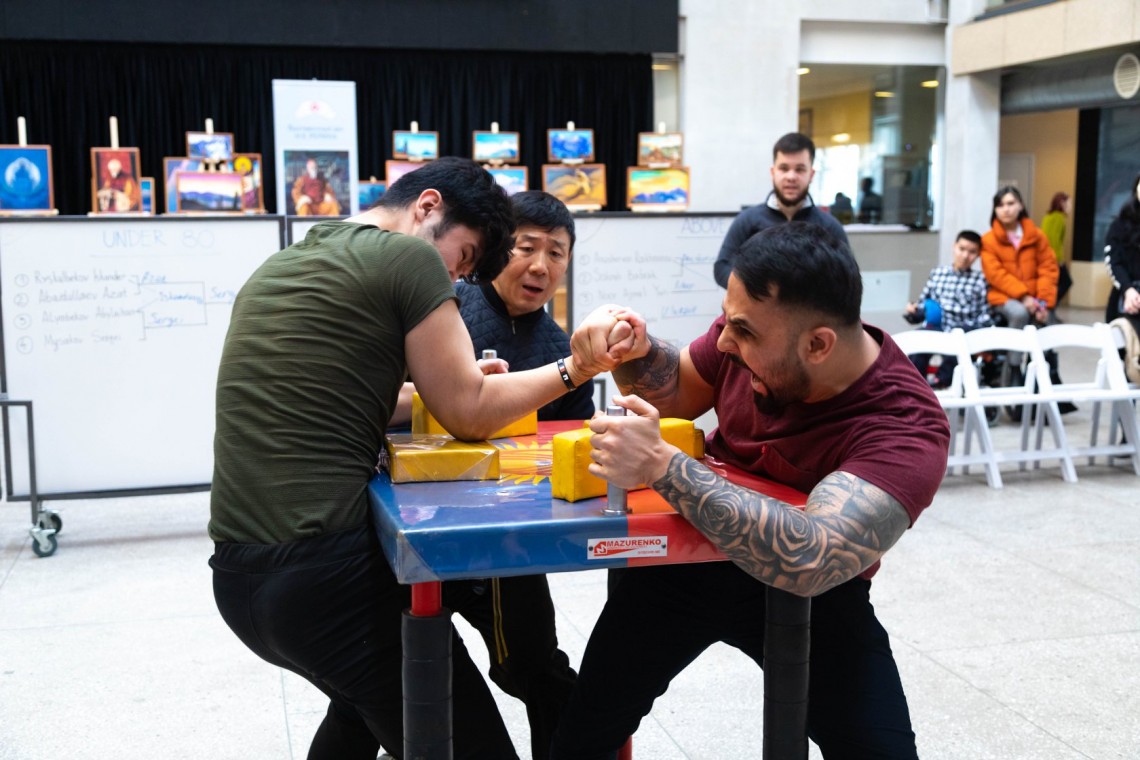 21 февраля в АУЦА прошёл турнир по армрестлингу, приуроченный к празднованию Дня защитника отечества. Мероприятие было организовано офисом по внеучебной деятельности студентов в партнёрстве с Федерацией армрестлинга Кыргызстана и спонсировано студенческим Сенатом АУЦА. Соревнования проводились среди мужчин в весовых категориях менее 70 кг, менее 80 кг, свыше 80 кг и отдельная категория для девушек. Судьёй на соревнованиях выступил многократный чемпион Кыргызстана и Азии по армрестлингу, чемпион мира по армрестлингу, вице-президент Федерации армрестлинга Кыргызстана Александр Ли.