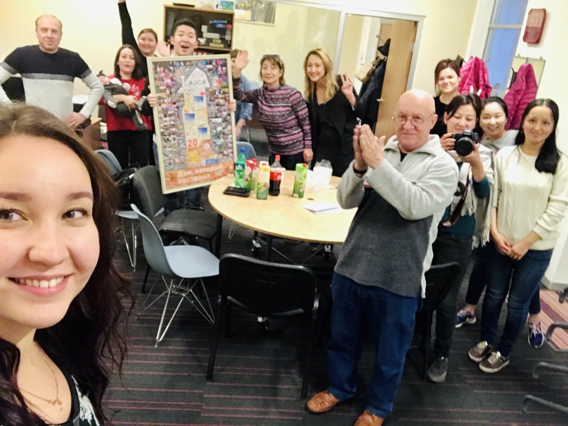 -В продолжении к моему предыдущему ответу... Однажды в 2008 году я зашла в зону под названием АУЦА и с первых же минут она стала для меня комфортной. Сейчас модно говорить, что нужно выходить из своей зоны комфорта. Я выходила оттуда, но потом снова заходила. И никогда не жалела. Я окончила АУЦА в 2012, через полгода Николай Григорьевич предложил работу студенческого координатора, а через какое-то время я стала арт-менеджером. Практика по этой сфере началась у меня с первого курса, как только я стала принимать участие в мероприятиях и заниматься волонтерством. Это было неосознанно, я плыла по течению и с каждым годом все лучше узнавала кухню студенческого офиса. В то время много опыта и знаний переняла от Ксении Миньковой и Адель Омуралиевой. Им большое спасибо. Всегда смотрела как работают Айзада Тыныева, Бермет Исмаилова, Инна Валерьевна, Женя Бойко. У каждого человека чему-то учишься. Ну и конечно же, Николай Григорьевич Шульгин, без которого наш офис бы и не существовал вовсе. Он по сей день вкладывает в нас знания, показывая это на своем опыте, он может и выслушать, и подсказать, и покритиковать и расслабиться не даст.