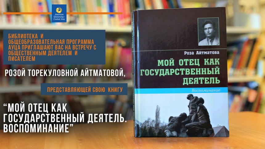 Библиотека АУЦА и общеобразовательная программа приглашает вас на встречу с Розой Торекуловной Айтматовой, представляющей свою книгу “Мой отец как государственный деятель. Воспоминание”. В ходе презентации книги, основанной на архивных и документальных материалах, Айтматова Р. Т. поделится личными воспоминаниями о своем отце - Торекуле Айтматове, видном государственном и политическом деятеле Кыргызстана. Встреча будет проводиться на кыргызском, русском и английском языках.