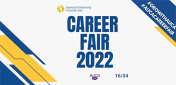 Центр Карьеры АУЦА рад объявить о проведении ярмарки вакансий 2022, которая пройдет в кампусе АУЦА 16 апреля! Также у вас будет возможность посетить эксклюзивные мастер-классы от наших выпускников и партнерских организаций в течение всей недели - с 11 по 16 апреля.