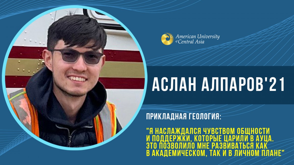 Аслан Алпаров окончил АУЦА в 2021 году по специальности «Прикладная геология». Сейчас Аслан получает степень магистра геологических наук в Университете Саскачевана, Канада. В то же время он работает полевым геологом в горнорудной компании SSR.